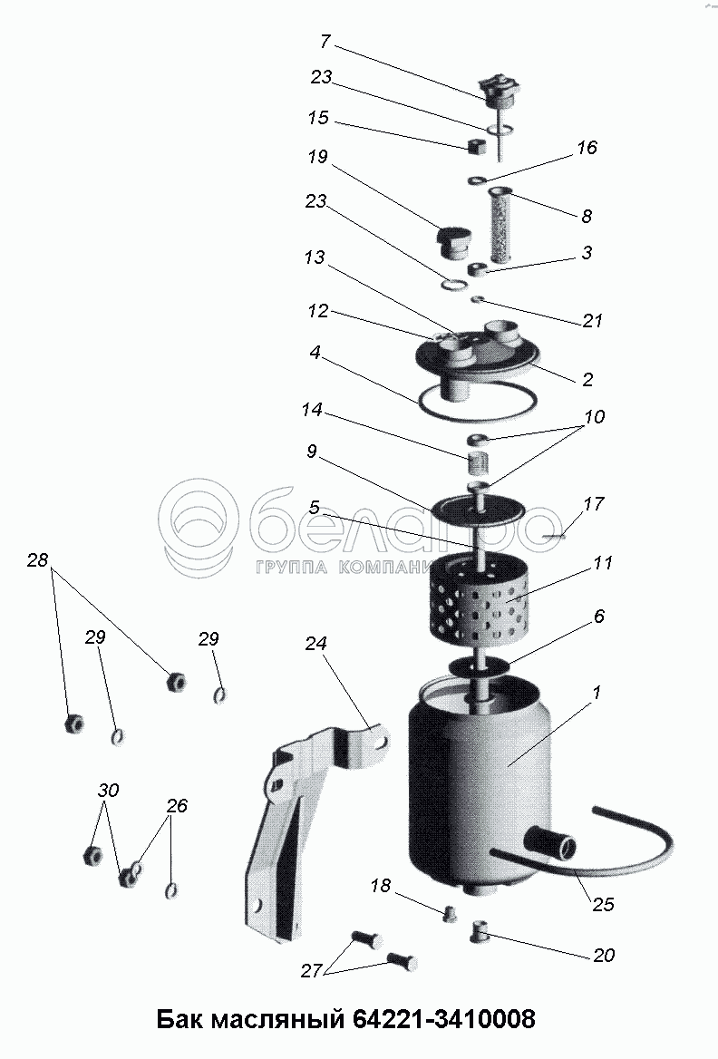 Каталог запасных частей к технике: МАЗ-533731. Бак масляный 64221-3410008