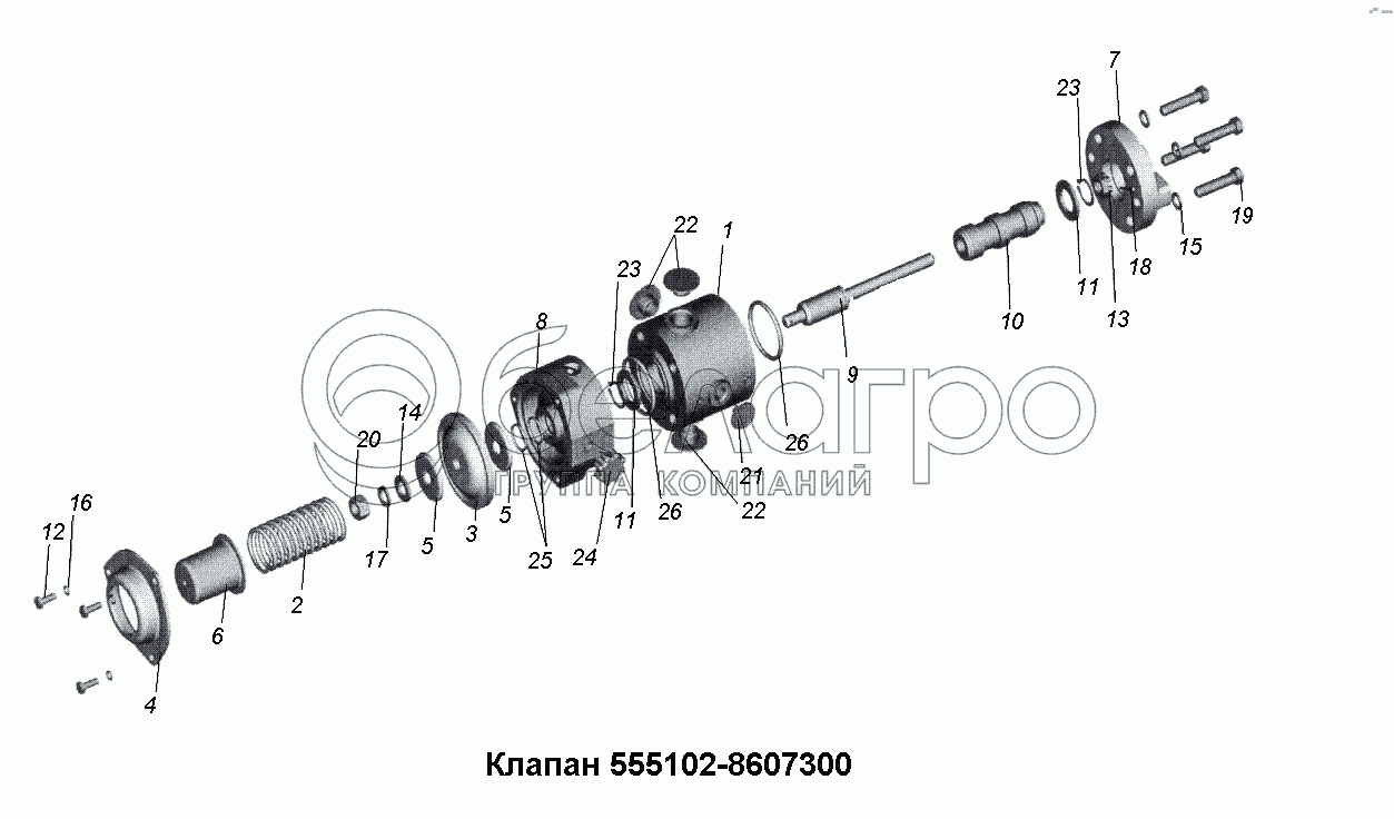 Каталог запасных частей к технике: МАЗ-533731. Клапан 555102-8607300