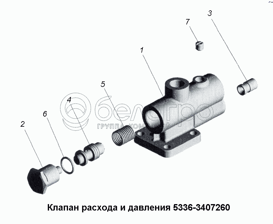 Каталог запасных частей к технике: МАЗ-533731. Клапан расхода и давления 5336-3407260