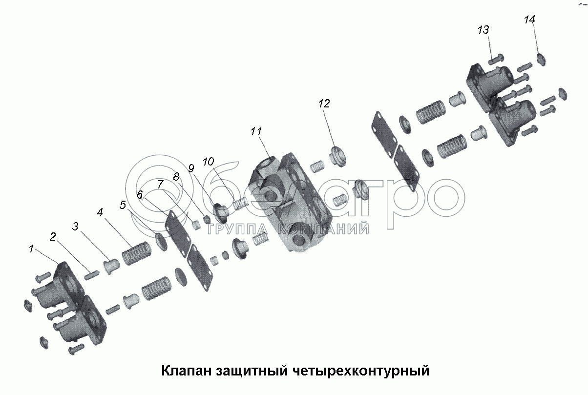 Каталог запасных частей к технике: МАЗ-533731. Клапан защитный четырехконтурный