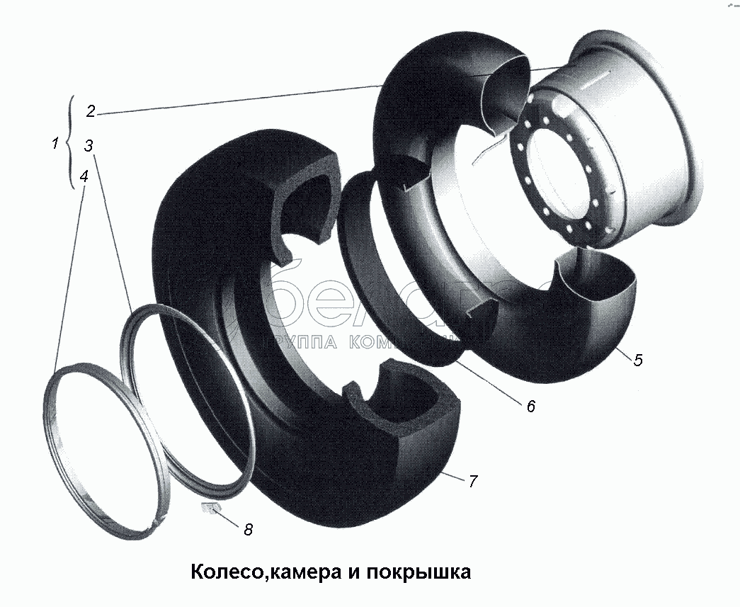 Каталог запасных частей к технике: МАЗ-533731. Колесо, камера и покрышка