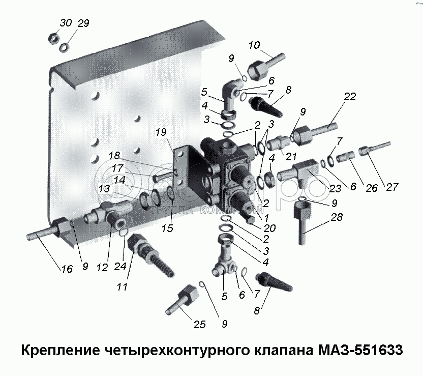 Каталог запасных частей к технике: МАЗ-533731. Крепление четырехконтурного клапана МАЗ-551633