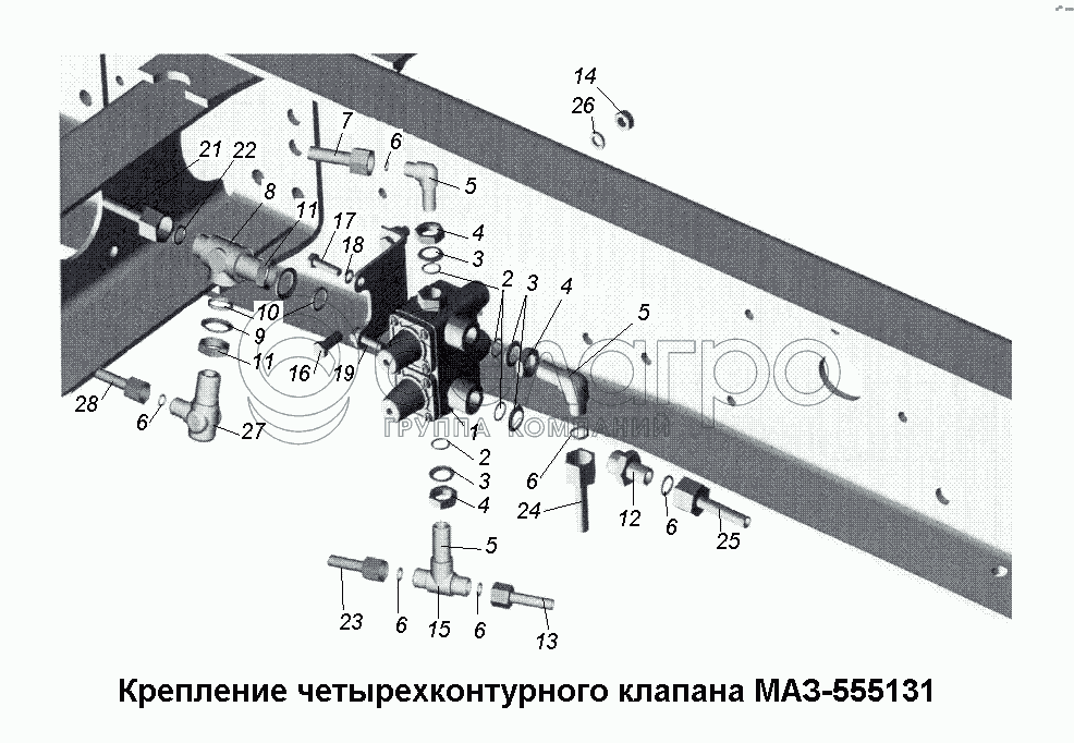 Каталог запасных частей к технике: МАЗ-533731. Крепление четырехконтурного клапана МАЗ-555131