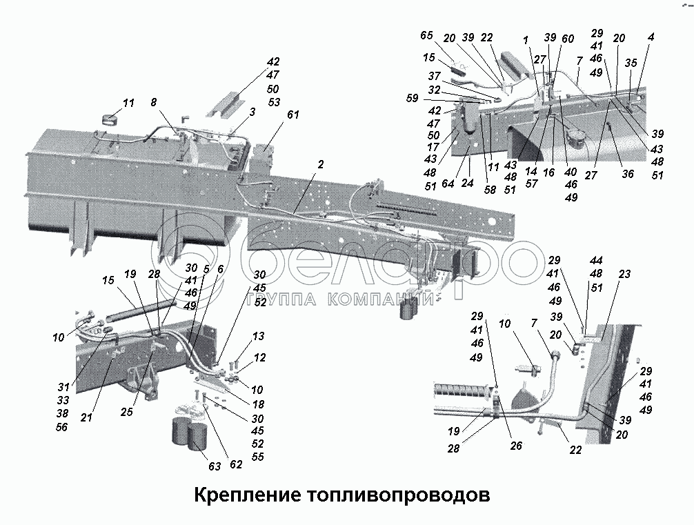 Каталог запасных частей к технике: МАЗ-533731. Крепление топливопроводов