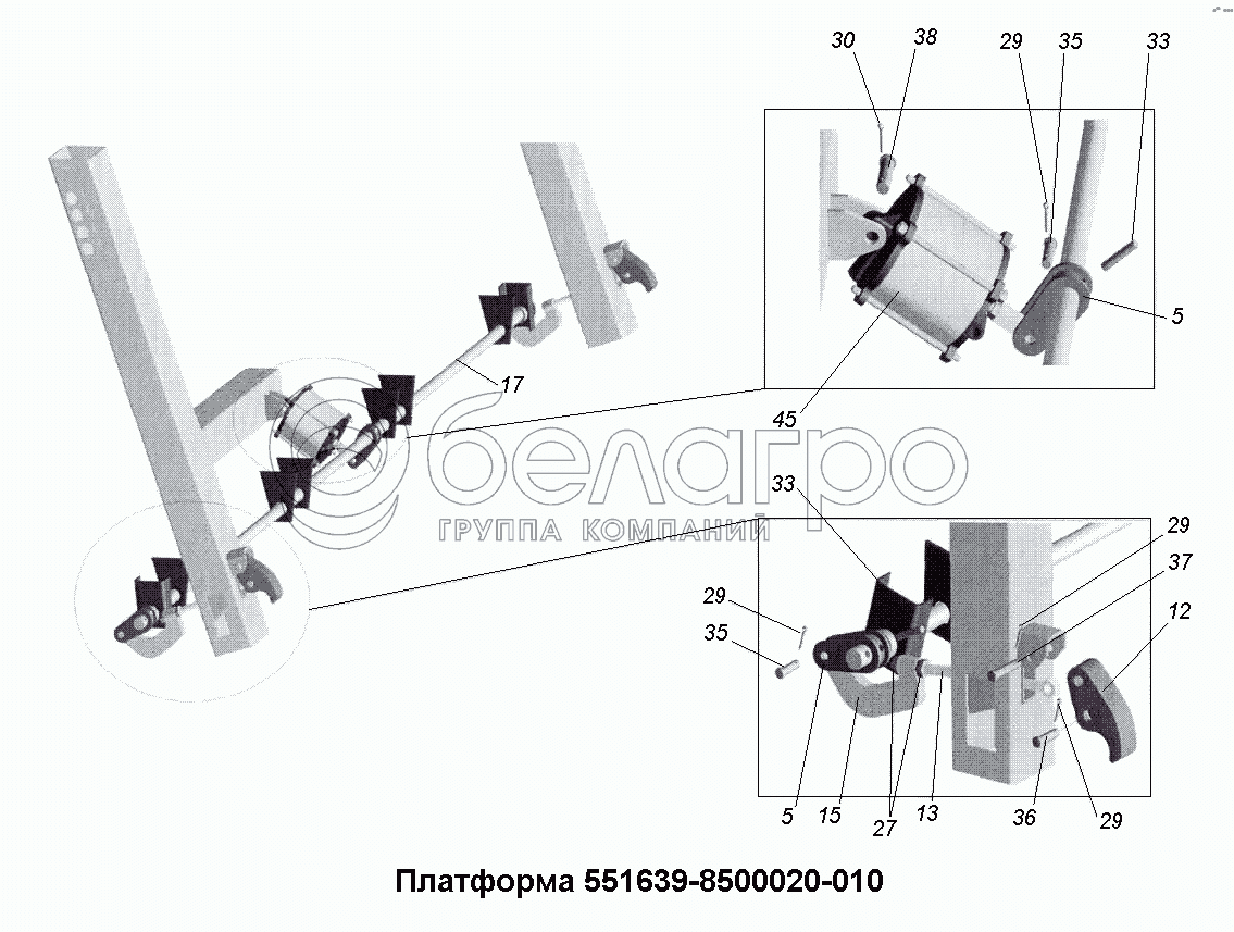 Каталог запасных частей к технике: МАЗ-533731. Платформа 551639-8500020-010