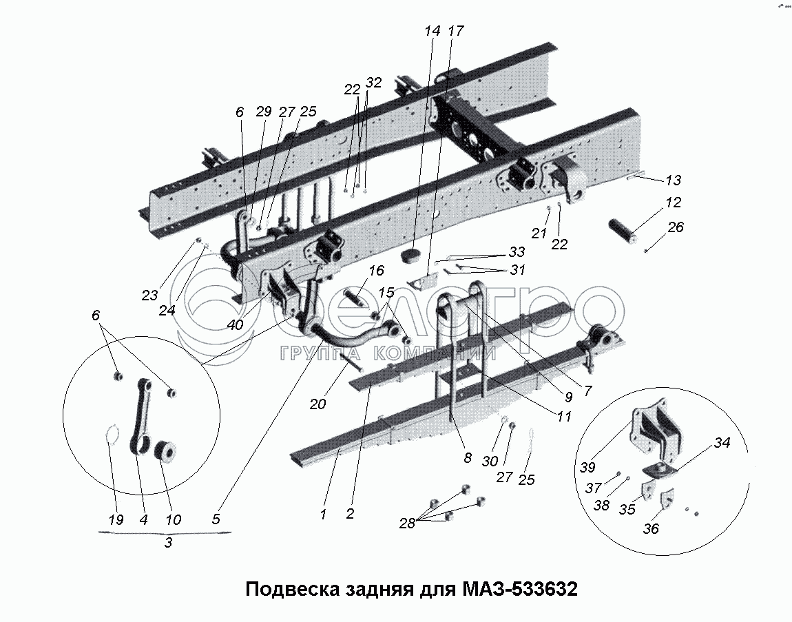 Каталог запасных частей к технике: МАЗ-533731. Подвеска задняя для МАЗ-533632