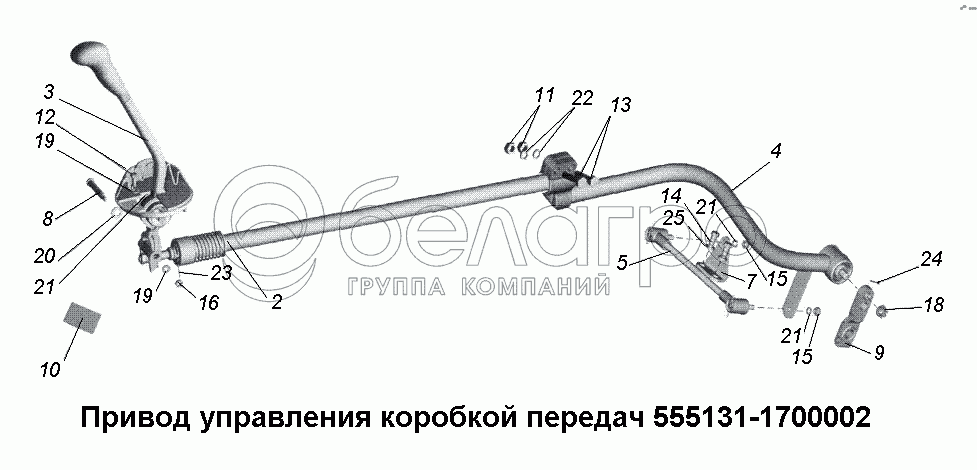 Каталог запасных частей к технике: МАЗ-533731. Привод управления коробкой передач 555131-1700002