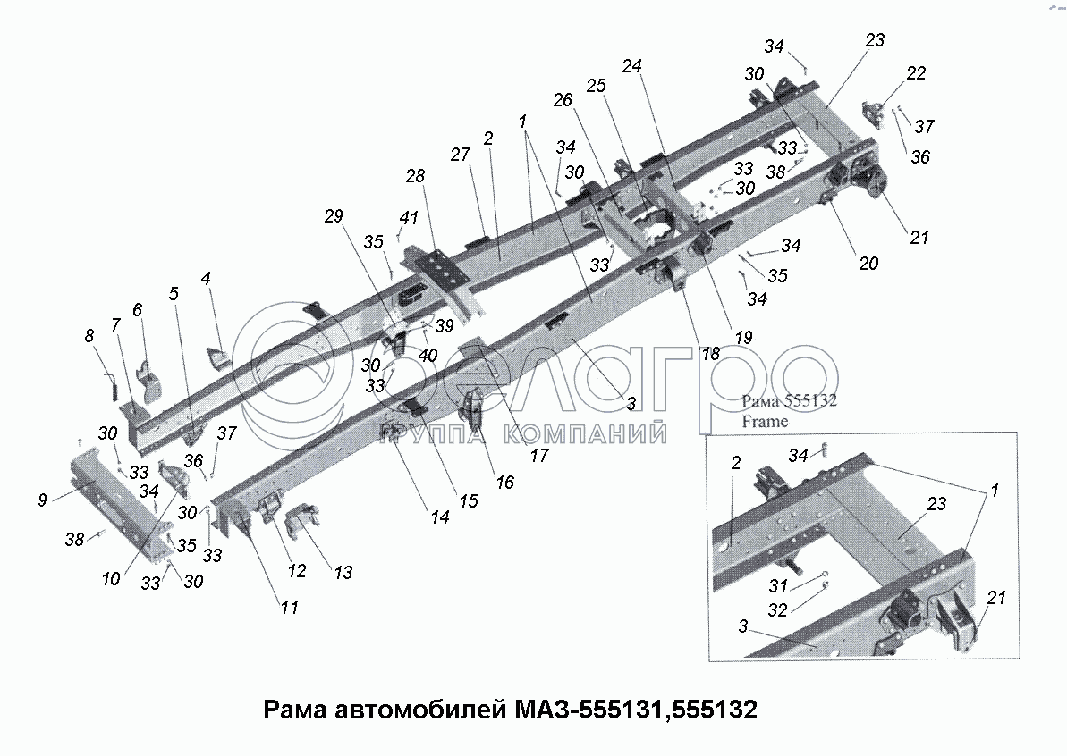 Каталог запасных частей к технике: МАЗ-533731. Рама автомобилей МАЗ-555131, 555132