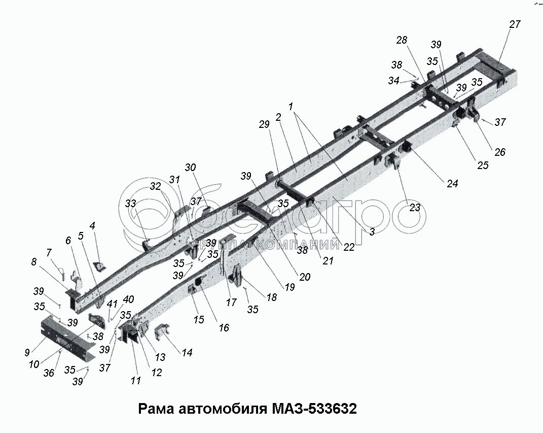 Каталог запасных частей к технике: МАЗ-533731. Рама автомобиля МАЗ-533632