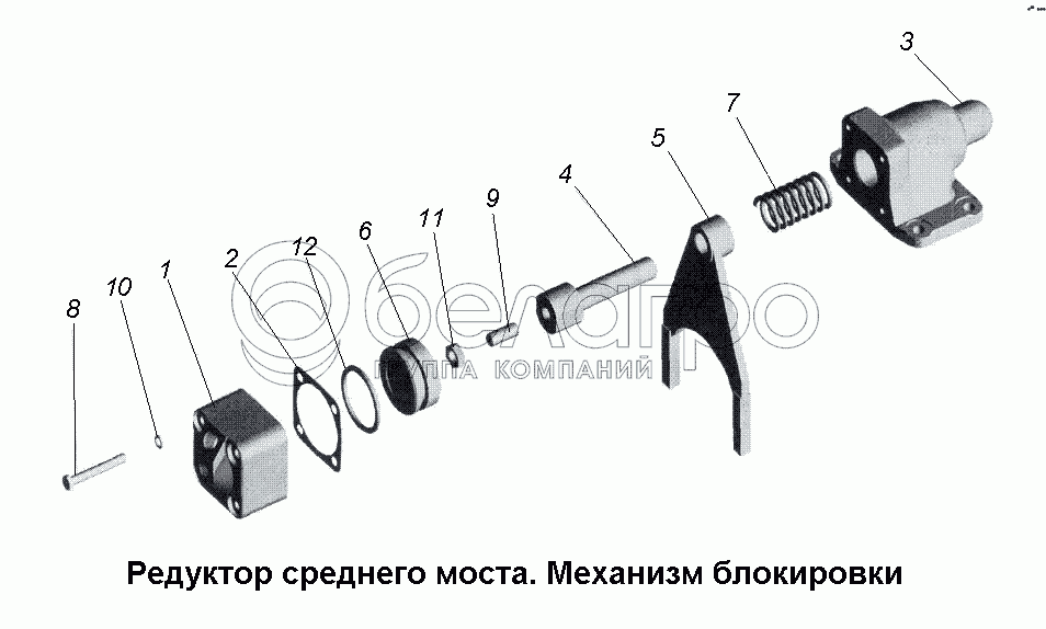 Каталог запасных частей к технике: МАЗ-533731. Редуктор среднего моста. Механизм блокировки