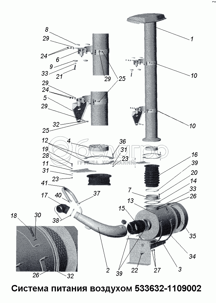 Каталог запасных частей к технике: МАЗ-533731. Система питания воздухом 533632-1109002