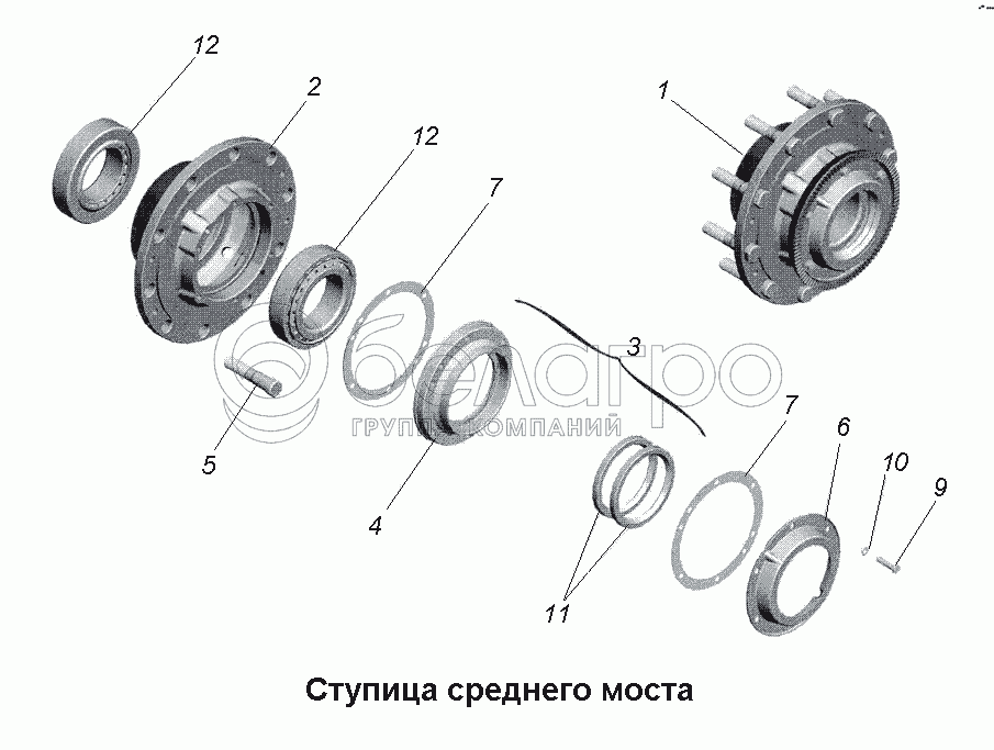 Каталог запасных частей к технике: МАЗ-533731. Ступица среднего моста