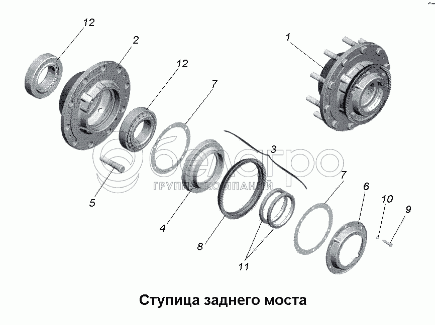 Каталог запасных частей к технике: МАЗ-533731. Ступица заднего моста