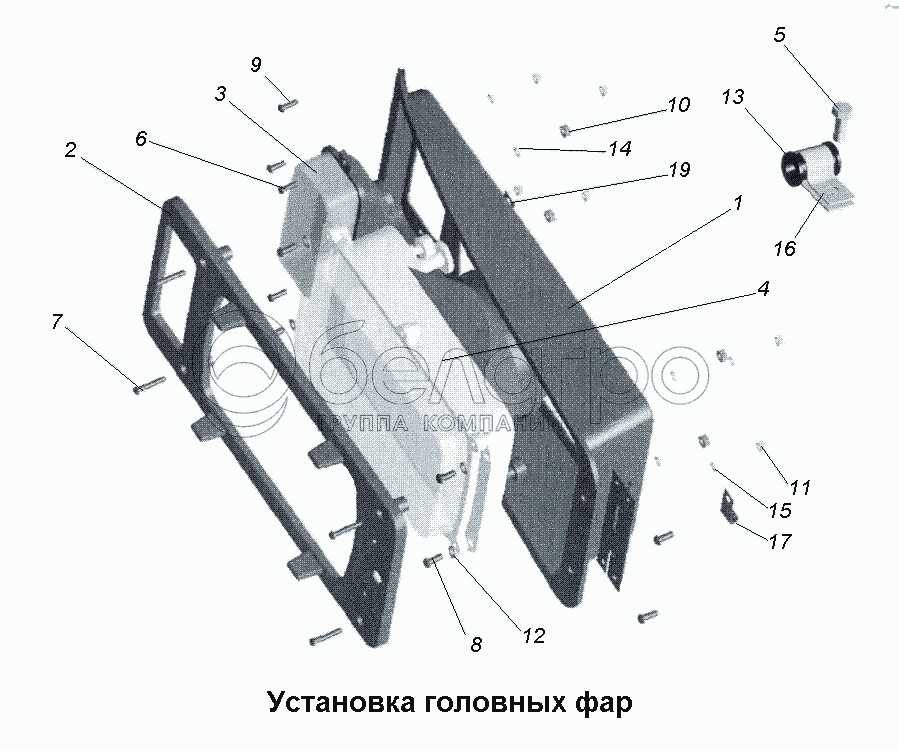 Каталог запасных частей к технике: МАЗ-533731. Установка головных фар