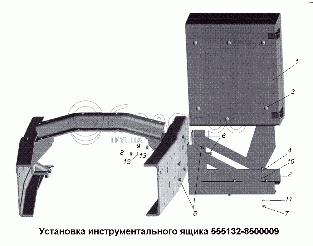 Каталог запасных частей к технике: МАЗ-533731. Установка инструментального ящика 555132-8500009