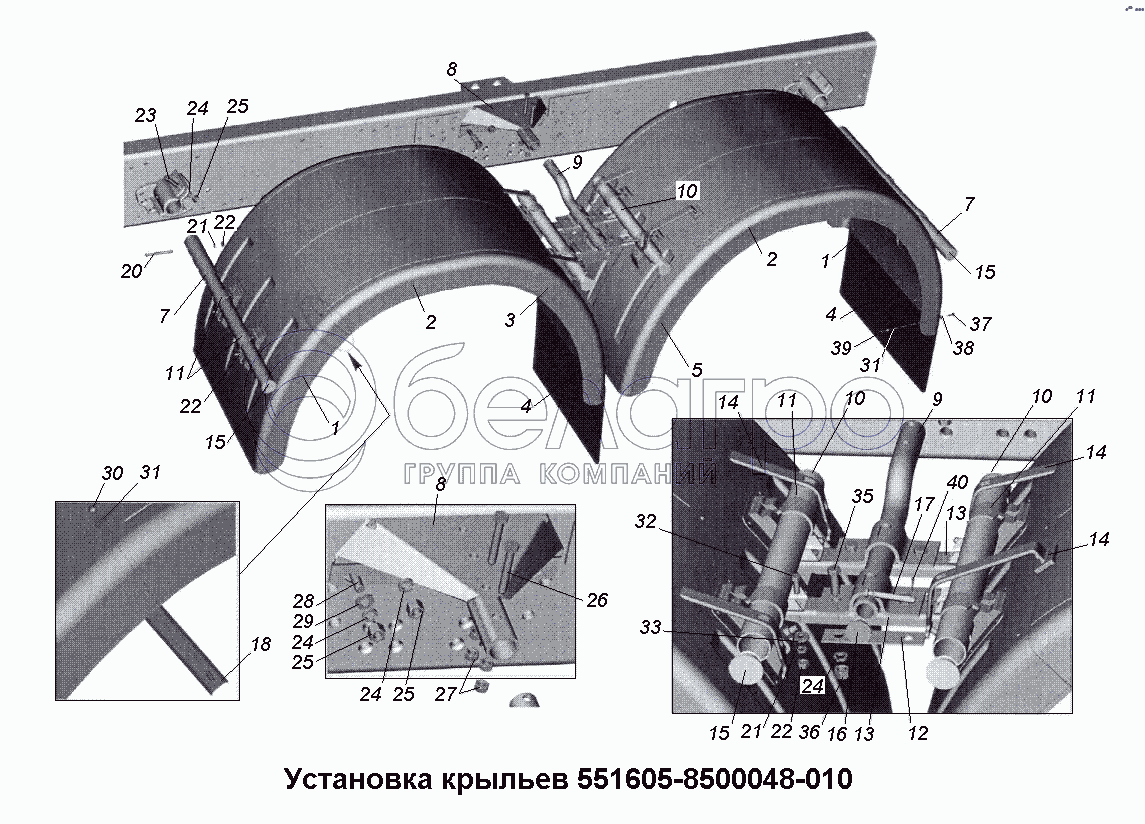 Каталог запасных частей к технике: МАЗ-533731. Установка крыльев 551605-8500048-010