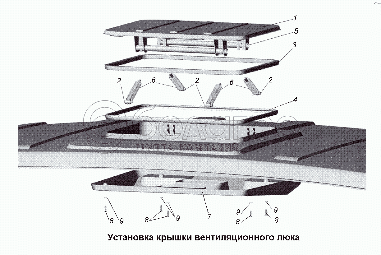 Каталог запасных частей к технике: МАЗ-533731. Установка крышки вентиляционного люка