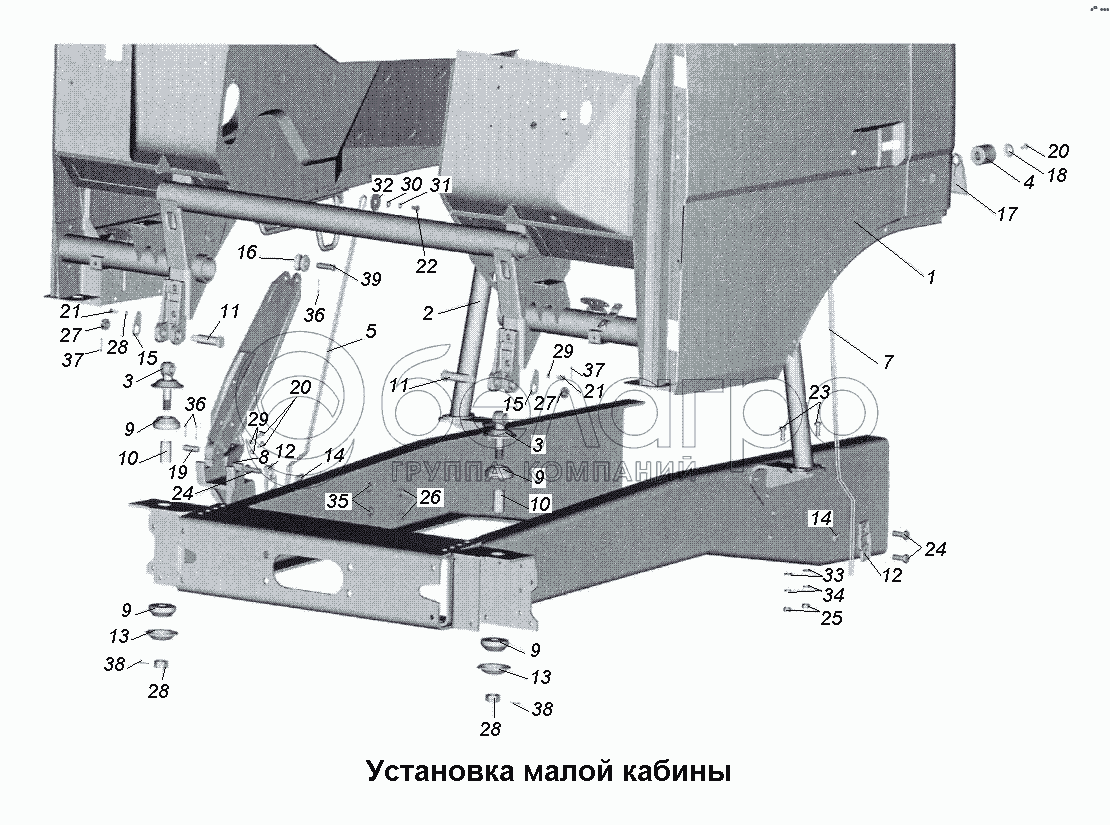 Каталог запасных частей к технике: МАЗ-533731. Установка малой кабины