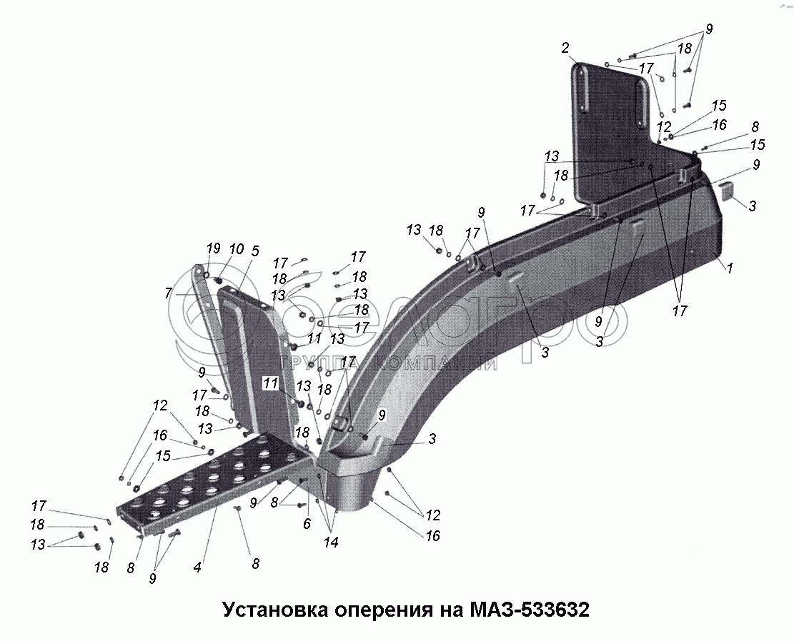Каталог запасных частей к технике: МАЗ-533731. Установка оперения на МАЗ-533632