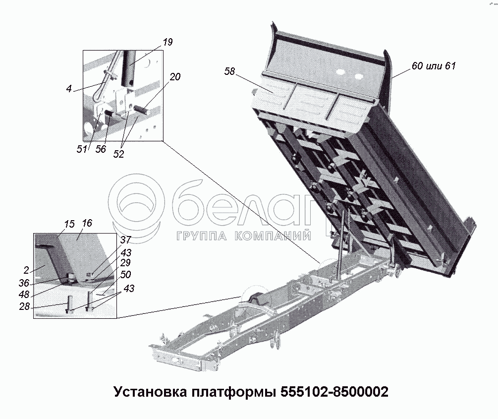 Каталог запасных частей к технике: МАЗ-533731. Установка платформы 555102-8500002