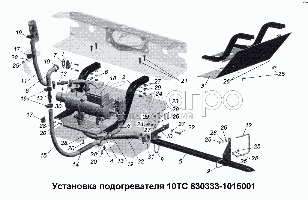 Каталог запасных частей к технике: МАЗ-533731. Установка подогревателя 10 ТС 630333-1015001