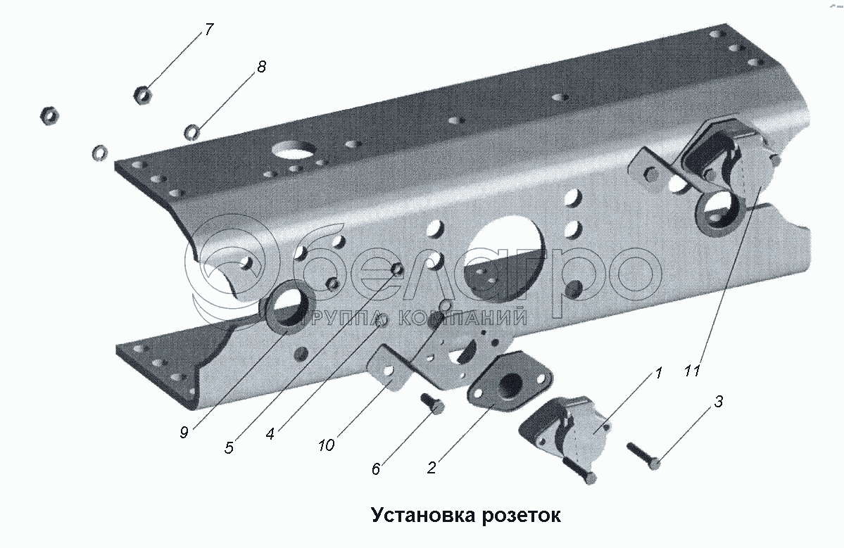 Каталог запасных частей к технике: МАЗ-533731. Установка розеток