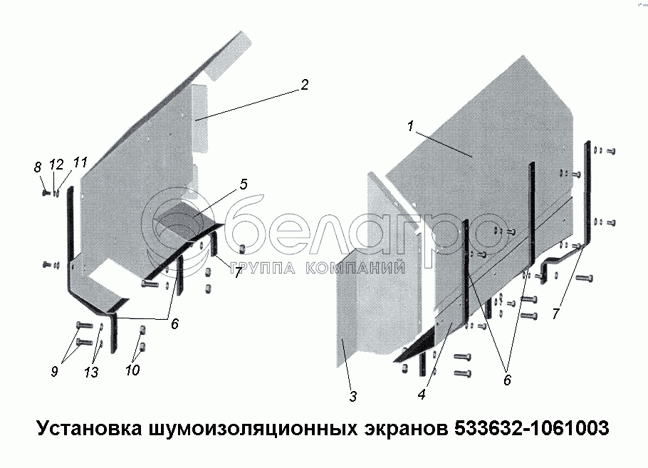 Каталог запасных частей к технике: МАЗ-533731. Установка шумоизоляционных экранов 533632-1061003