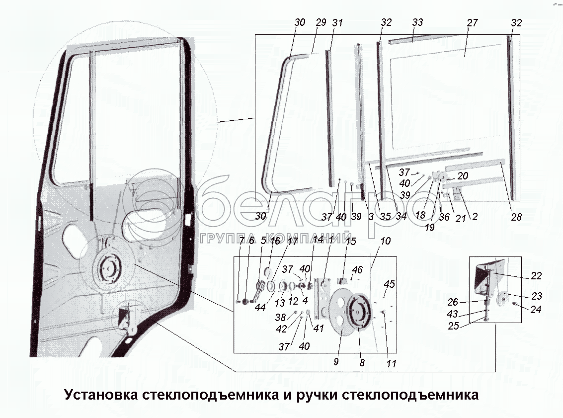 Каталог запасных частей к технике: МАЗ-533731. Установка стеклоподъемника и ручки стеклоподъемника