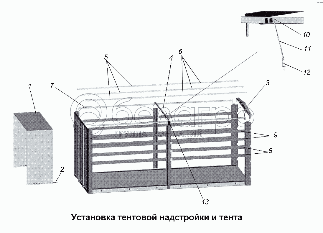 Каталог запасных частей к технике: МАЗ-533731. Установка тентовой надстройки и тента