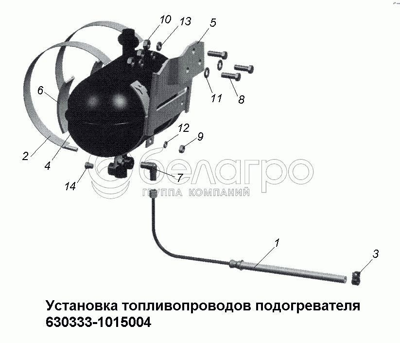 Каталог запасных частей к технике: МАЗ-533731. Установка топливопроводов подогревателя 630333-1015004