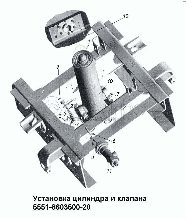 Каталог запасных частей к технике: МАЗ-533731. Установка цилиндра и клапана 5551-8603500-20