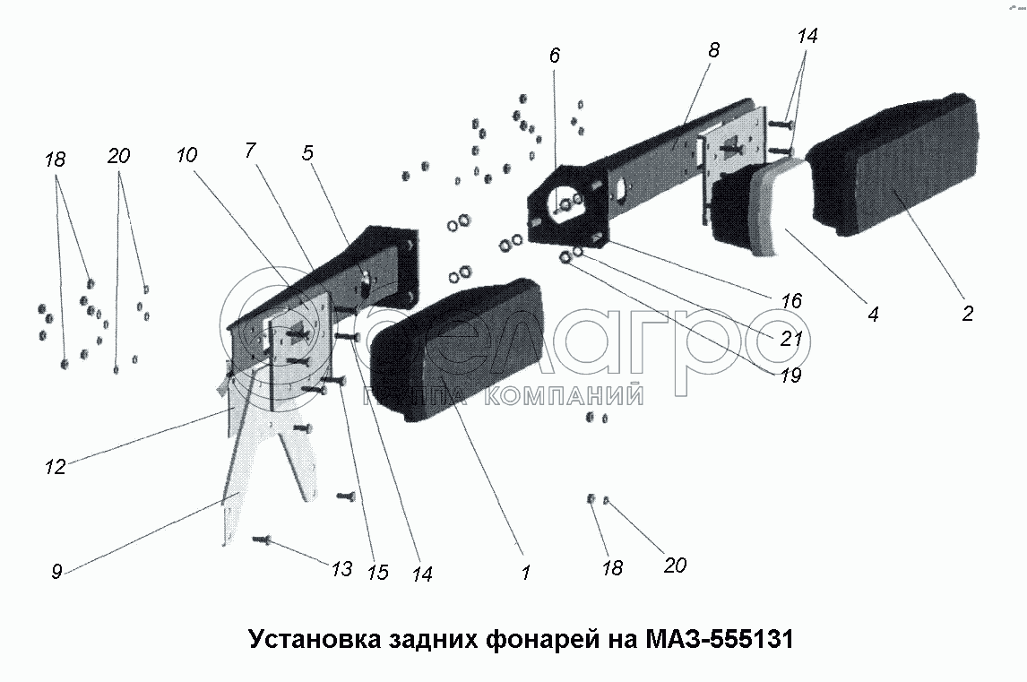 Каталог запасных частей к технике: МАЗ-533731. Установка задних фонарей на МАЗ-555131
