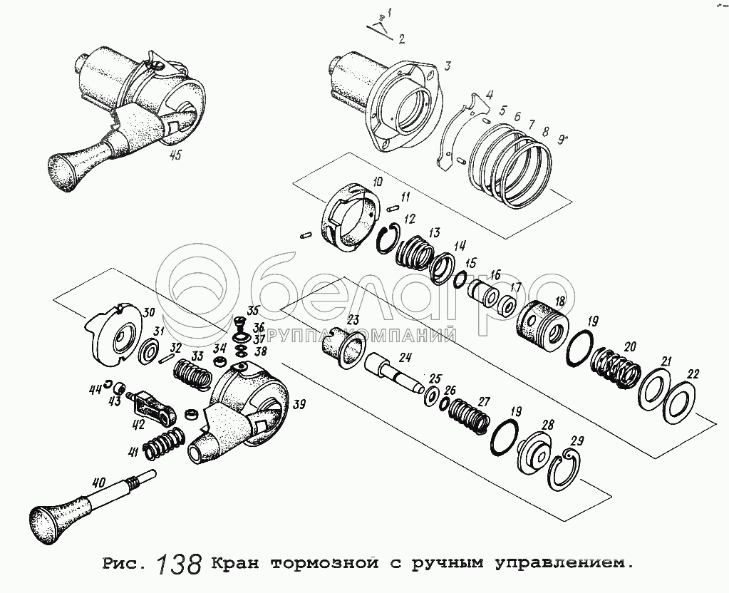 Каталог запасных частей к технике: МАЗ-5337. Кран тормозной с ручным управлением