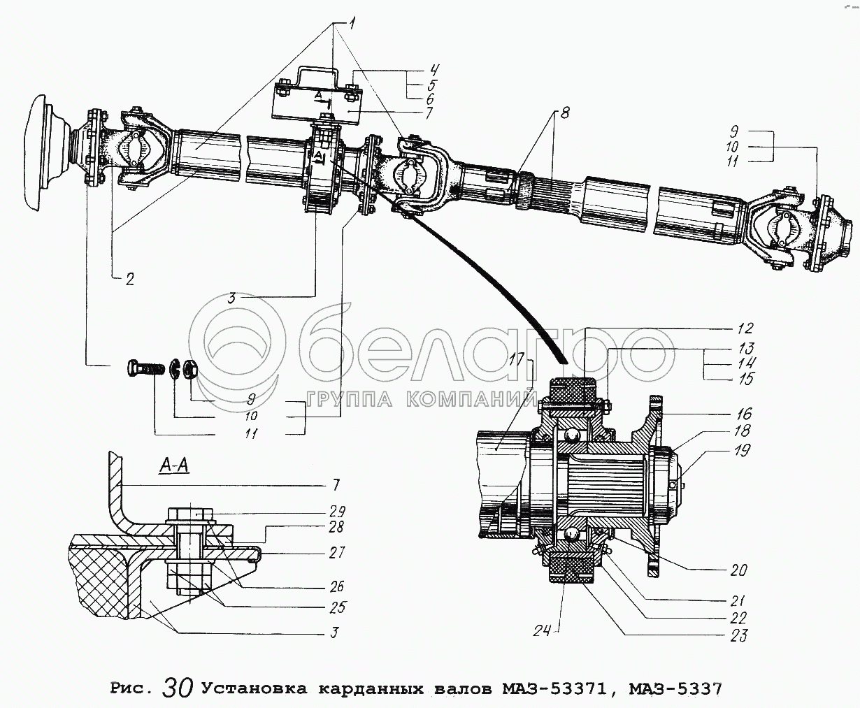 Каталог запасных частей к технике: МАЗ-5337. Установка карданных валов МАЗ-53371, МАЗ-5337