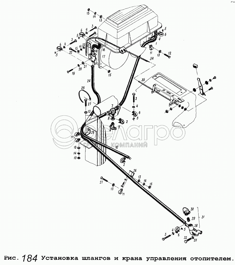 Каталог запасных частей к технике: МАЗ-5337. Установка шлангов и крана управления отопителем