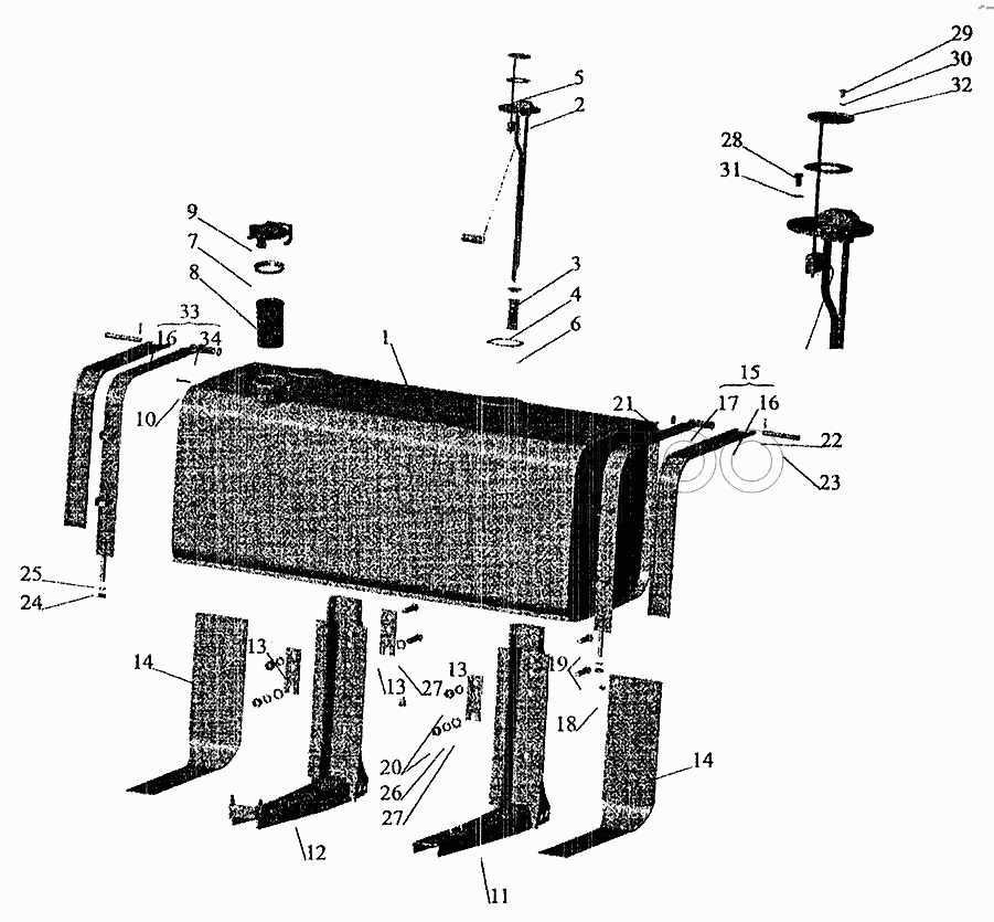 Каталог запасных частей к технике: МАЗ-5337 (2005). Крепление топливного бака (500 литров)