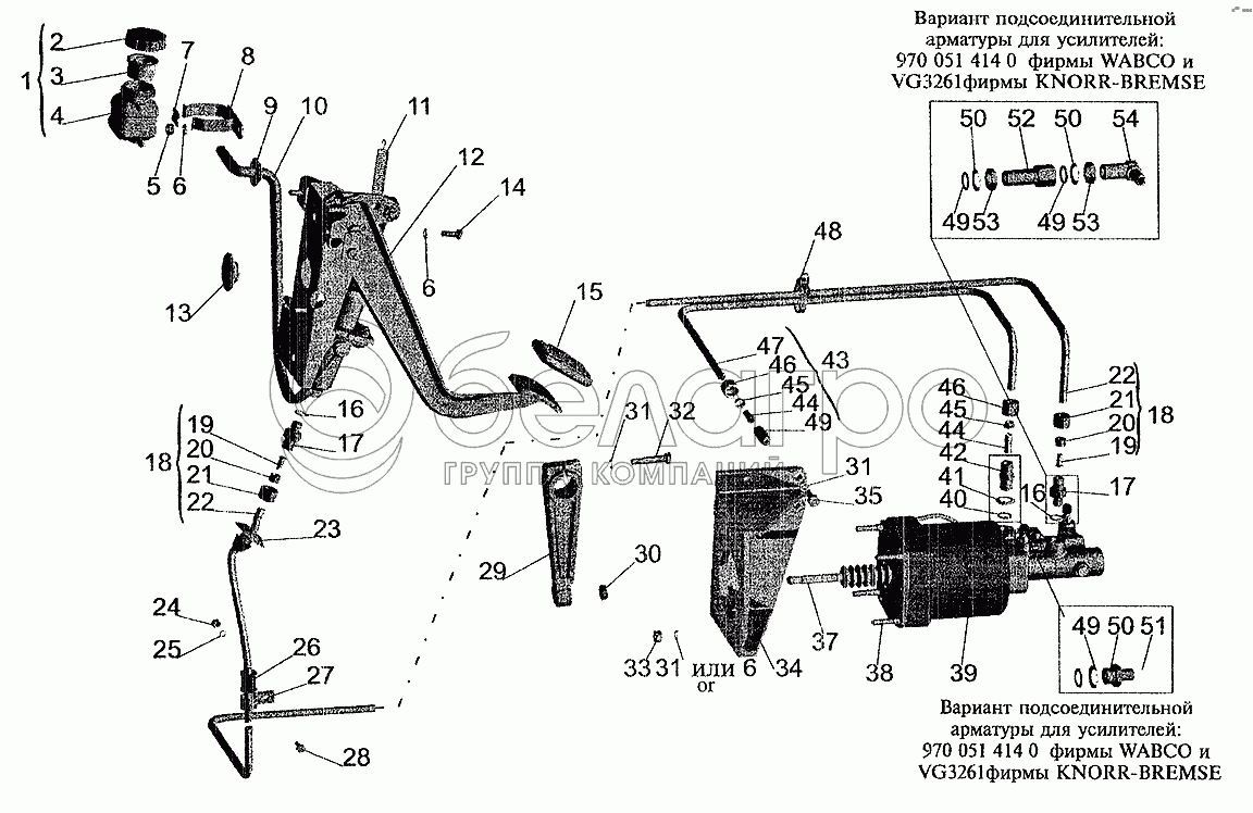 Каталог запасных частей к технике: МАЗ-5337 (2005). Механизм управления сцеплением