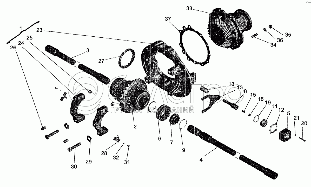 Каталог запасных частей к технике: МАЗ-5337 (2005). Мост задний МАЗ-533608. Редуктор
