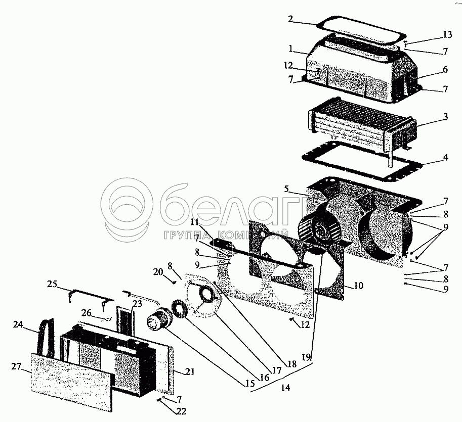 Каталог запасных частей к технике: МАЗ-5337 (2005). Отопитель