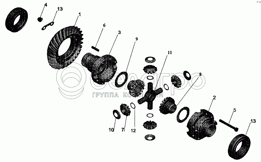 Каталог запасных частей к технике: МАЗ-5337 (2005). Редуктор среднего моста. Дифференциал
