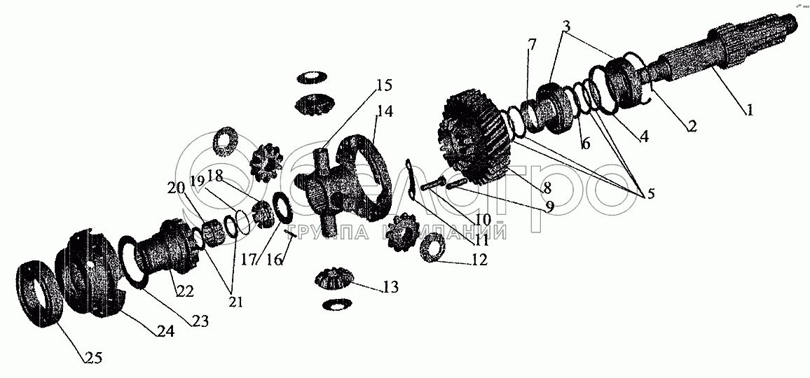 Каталог запасных частей к технике: МАЗ-5337 (2005). Редуктор среднего моста. Дифференциал межосевой