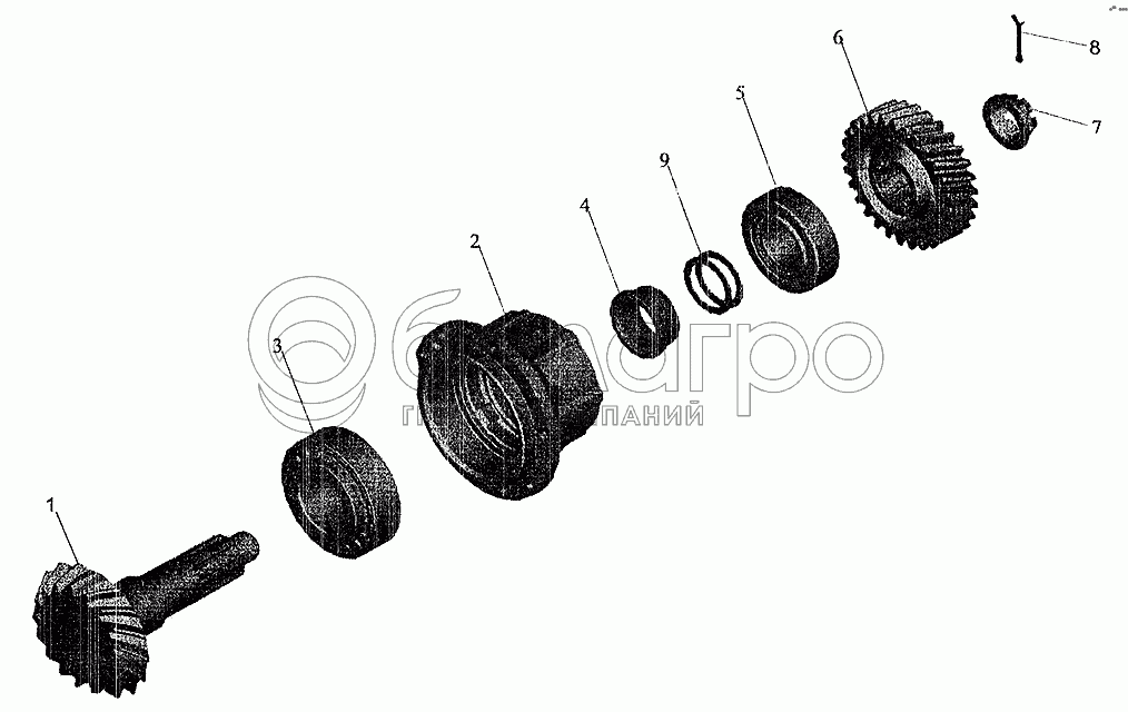 Каталог запасных частей к технике: МАЗ-5337 (2005). Редуктор среднего моста. Шестерня ведущая