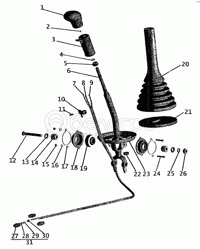 Каталог запасных частей к технике: МАЗ-5337 (2005). Рычаг 64221-1703410-01