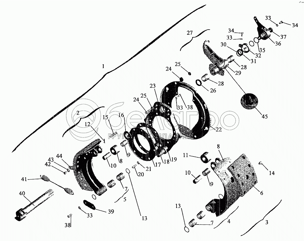 Каталог запасных частей к технике: МАЗ-5337 (2005). Тормозной механизм передних колес
