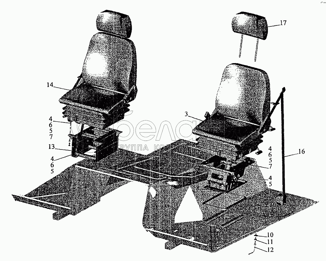 Каталог запасных частей к технике: МАЗ-5337 (2005). Установка и пневмопитание сидений