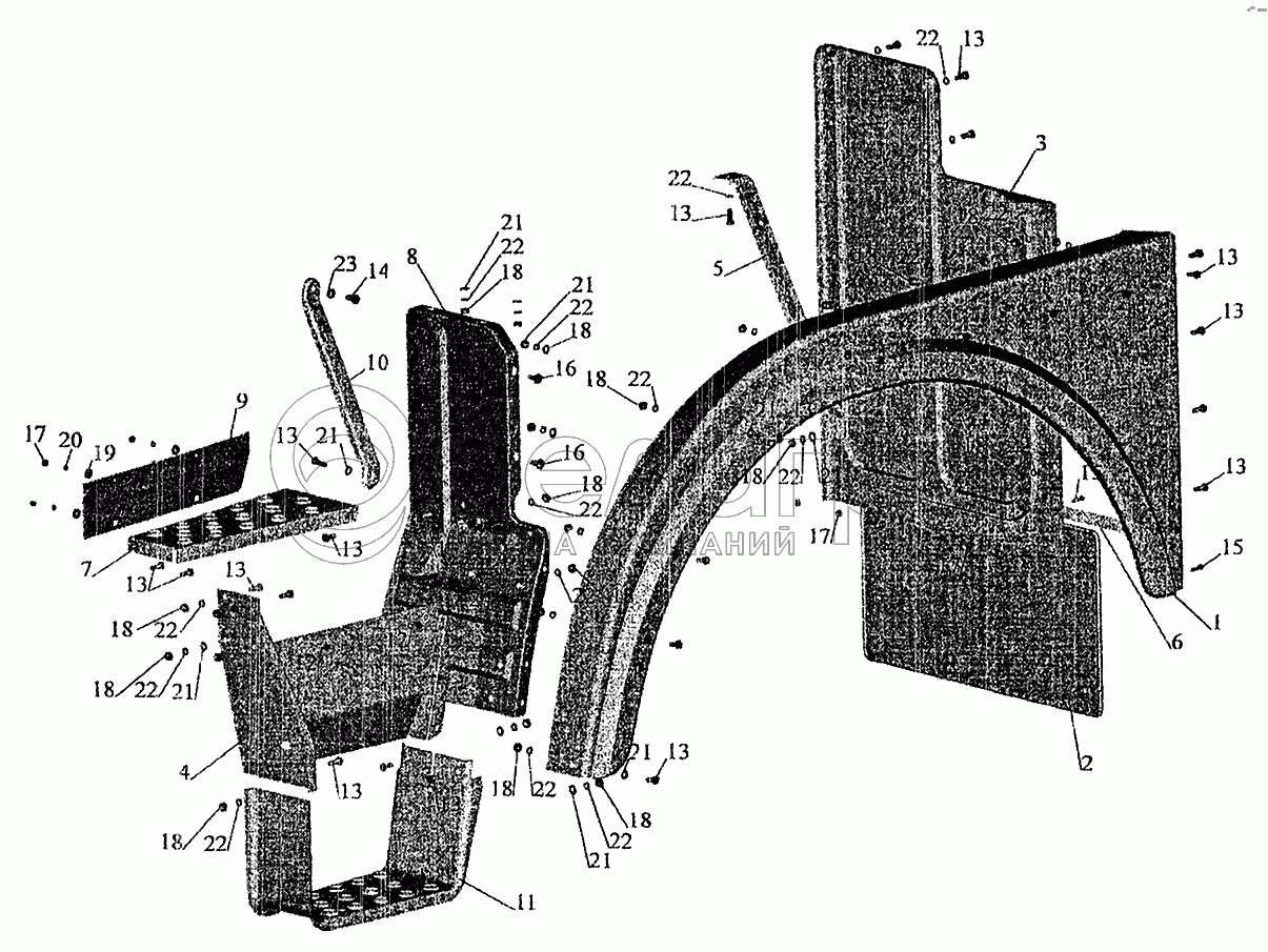 Каталог запасных частей к технике: МАЗ-5337 (2005). Установка оперения на большую кабину