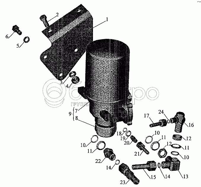 Каталог запасных частей к технике: МАЗ-5337 (2005). Установка осушителя воздуха и присоединительной арматуры