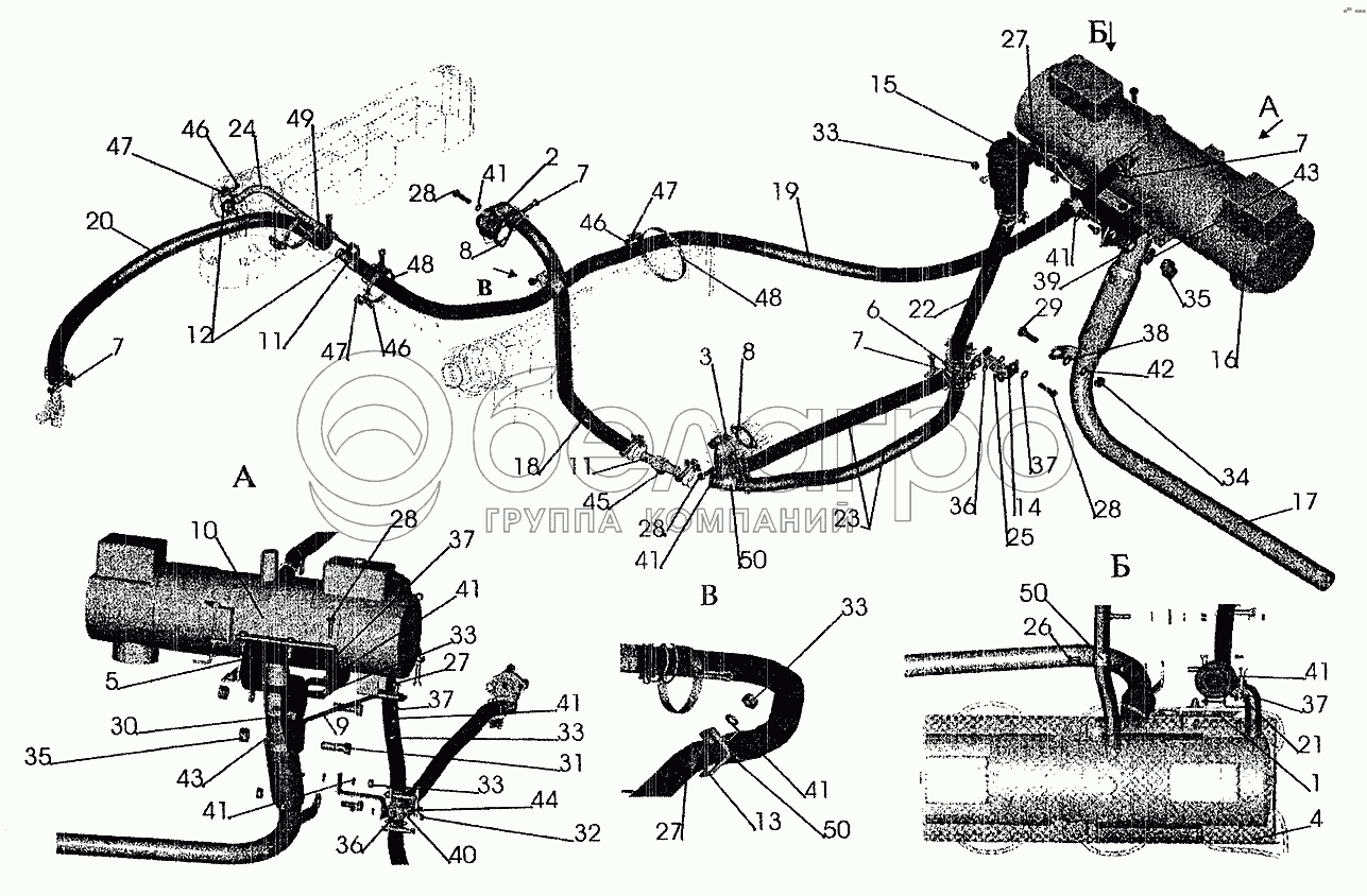 Каталог запасных частей к технике: МАЗ-5337 (2005). Установка подогревателя