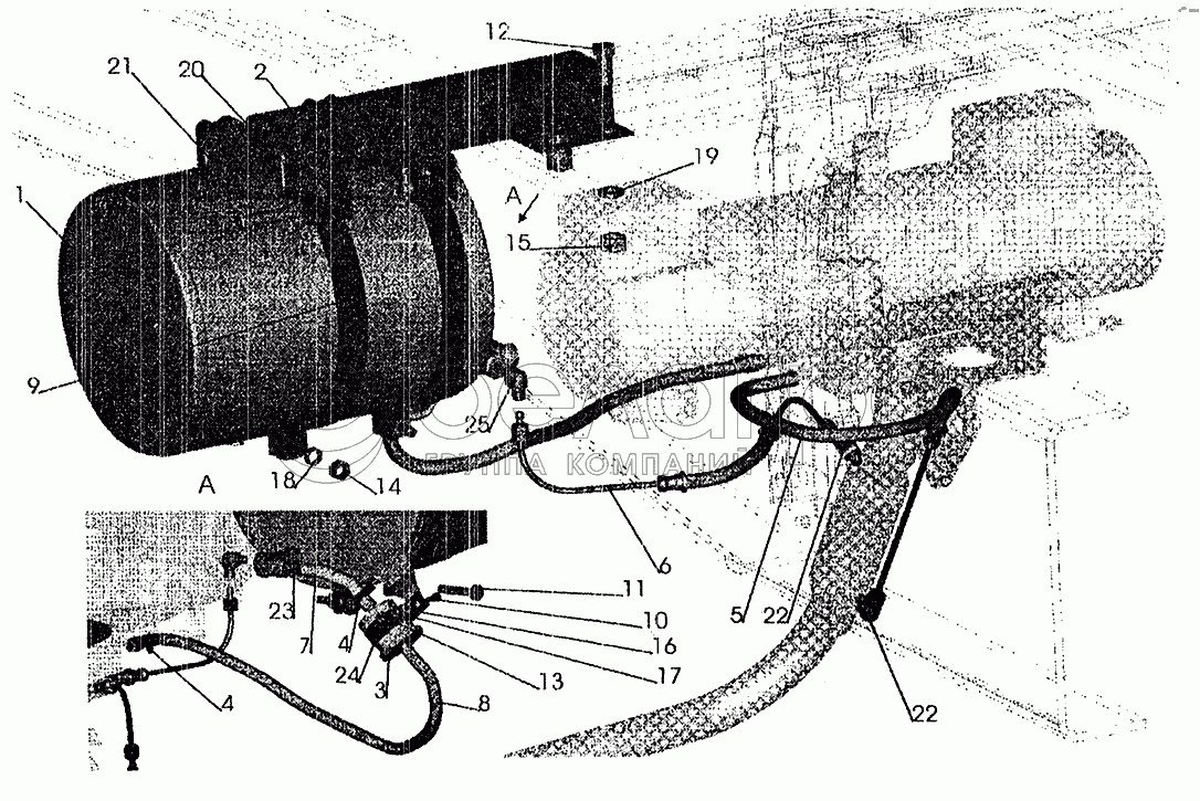 Каталог запасных частей к технике: МАЗ-5337 (2005). Установка топливопроводов подогревателя