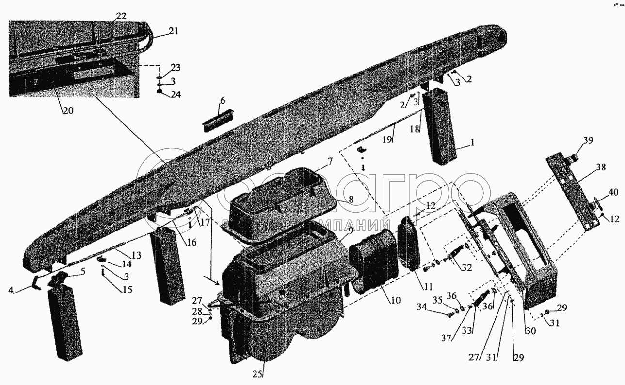 Каталог запасных частей к технике: МАЗ-5337 (2005). Установка воздушных заслонок и отопителя кабины